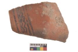 | Description / विवरण | Specimen of black on red ware with decorative geometric Motif of wavy painting. |
