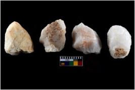 | Description / विवरण | There are n-4 of intact utilized flakes made up of Quartz. Some of them have bulge of percussion and some are flat flakes. |