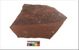 | Description / विवरण | Specimen of potsherd with black decorative geometric painting. Type Black on Red Ware . |