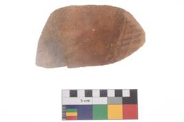 | Description / विवरण | Specimen of potsherd with black decorative geometric painting . |