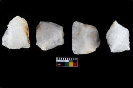 | Description / विवरण | There are n-4 of intact utilized flakes made up of Quartz. Some of them have bulge of percussion and some are flat flakes. |