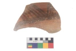 | Description / विवरण | Specimen of potsherd with black decorative geometric painting . |