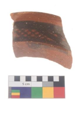 | Description / विवरण | Specimen of potsherd with black decorative geometric painting . |