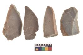 | Description / विवरण | There are n-4 of utilized flake cores. There are multidirectional irregular dominant scar pattern on both dorsal and ventral face of the cores. |