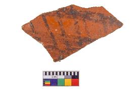 | Description / विवरण | Specimen of potsherd with decorative geometric Linear painting, Type Black on Red Ware . |