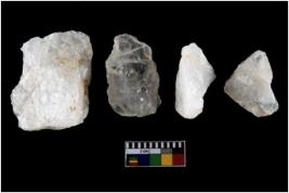 | Description / विवरण | Specimen of cores with weathered cortex and several broad fluted marks. Some of them are tapering at one end. |