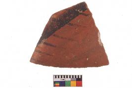 | Description / विवरण | Specimen of potsherd with decorative painting, Type Black on Red Ware . |