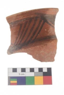 | Description / विवरण | Specimen of potsherd with black decorative geometric painting . |
