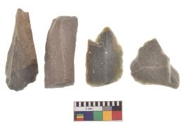 | Description / विवरण | There are n-4 of utilized flake cores. There are multidirectional irregular dominant scar pattern on both dorsal and ventral face of the cores. |