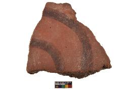 | Description / विवरण | Specimen of black on red ware with decorative geometric Curve lines painting. |