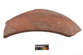 | Description / विवरण | Specimen of black on red ware with decorative geometric Oblique lines set in two horizontal bands painting. |