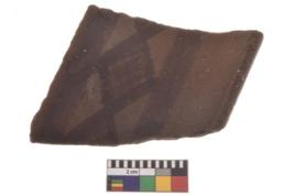 | Description / विवरण | Specimen of black on red ware with decorative geometric A row of latticed diamonds set in horizontal bands but having groups of oblique lines at intervals painting. |