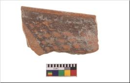 | Description / विवरण | Specimen of potsherd with black decorative geometric painting. Type Black on Red Ware . |