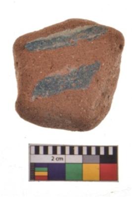 | Description / विवरण | Specimen is of red ware with two blue-paintedparallel lines over it. |