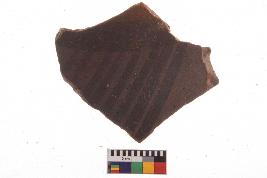 | Description / विवरण | Specimen of potsherd with decorative geometric Linear painting, Type Black on Red Ware . |