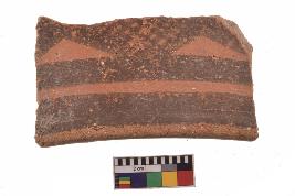 | Description / विवरण | Specimen of black on red ware with decorative geometric A row of latticed diamonds set in horizontal bands but having groups of oblique lines at intervals painting. |