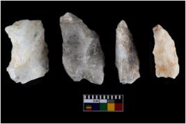 | Description / विवरण | There are n-4 of intact utilized flakes made up of Quartz. Some of them have bulge of percussion and some are flat flakes. |