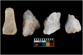 | Description / विवरण | There are n-4 of intact utilized flakes made up of Quartz. Some of them have bulge of percussion and some are flat flakes. |