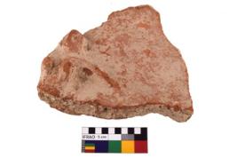 | Description / विवरण | A specimen of a potsherd. It is reddish in colour with decorative animal on it. |