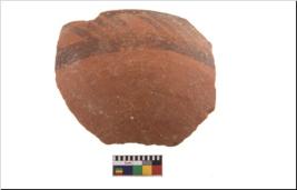 | Description / विवरण | Specimen of potsherd with black decorative geometric painting. Type Black on Red Ware . |