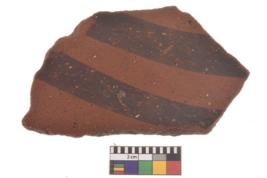 | Description / विवरण | Specimen of black on red ware with decorative geometric parallel lines painting. |