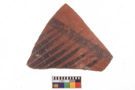 | Description / विवरण | Specimen of potsherd with decorative geometric Linear painting, Type Black on Red Ware . |