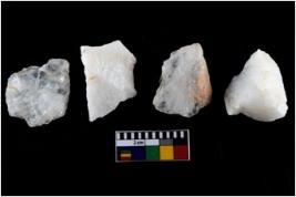 | Description / विवरण | There are n-4 of intact utilized flakes made up of Quartz. Some of them have bulge of percussion and some are flat flakes. |