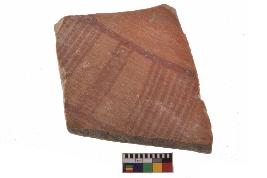 | Description / विवरण | Specimen of red on red ware with decorative geometric A groups of vertical lines set in horizontal bands painting. |