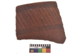 | Description / विवरण | Specimen of black on red ware with decorative geometric Outcurved lines painting. |