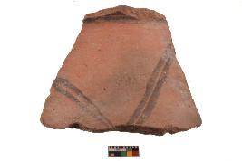 | Description / विवरण | Specimen of black on red ware with decorative geometric Two sets of two oblique bands in opposite direction painting. |
