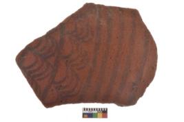 | Description / विवरण | Specimen of black on red ware with decorative geometric Double register of multiple loop and bands painting. |