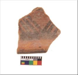 | Description / विवरण | Specimen of potsherd with black decorative geometric painting. Type Black on Red Ware . |