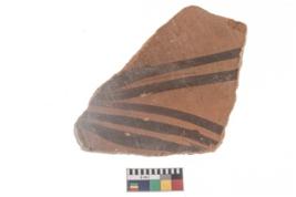 | Description / विवरण | .Specimen of potsherd black on red painted pottery. It is fine fabric in sharp contrast with painted design are executed in black pigment. |