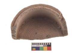 | Description / विवरण | A half-broken specimen with circular pattern at the base. |