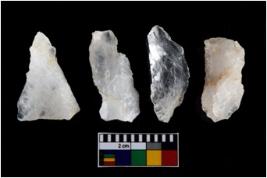| Description / विवरण | There are n-4 of intact utilized flakes made up of Quartz. Some of them have bulge of percussion and some are flat flakes. |
