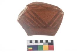 | Description / विवरण | Specimen of potsherd black on red painted pottery. It is fine fabric in sharp contrast with painted design are executed in black pigment. |