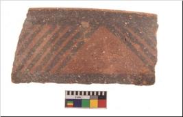 | Description / विवरण | Specimen of potsherd with black decorative geometric painting. Type Black on Red Ware . |
