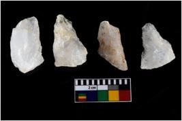 | Description / विवरण | There are n-4 of intact utilized flakes made up of Quartz. Some of them have bulge of percussion and some are flat flakes. |