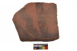| Description / विवरण | Specimen of black on red ware with decorative geometric Two vertical lines and one is latticed band painting. |
