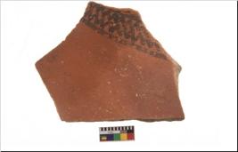 | Description / विवरण | Specimen of potsherd with black decorative geometric painting. Type Black on Red Ware . |