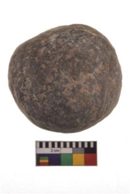 | Description / विवरण | A blackish circular specimen having battered surface. |