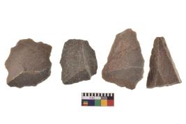 | Description / विवरण | There are n-4 of utilized flake cores. There are multidirectional irregular dominant scar pattern on both dorsal and ventral face of the cores. |