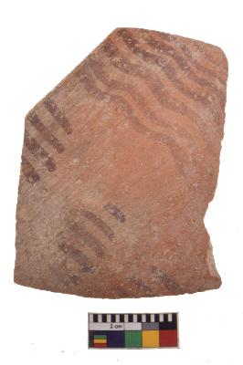 | Description / विवरण | 0Specimen of red on red ware with decorative geometric A groups of latticed bands painting. |