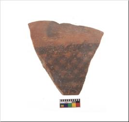 | Description / विवरण | Specimen of potsherd with black decorative geometric painting. Type Black on Red Ware . |