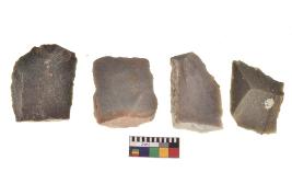 | Description / विवरण | There are n-4 of utilized flake cores. There are multidirectional irregular dominant scar pattern on both dorsal and ventral face of the cores. |