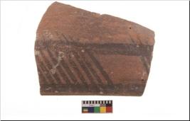 | Description / विवरण | Specimen of potsherd with black decorative geometric painting. Type Black on Red Ware . |