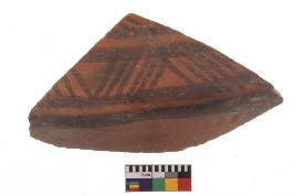 | Description / विवरण | Specimen of potsherd with black decorative geometric Linear painting, Type Black on Red Ware . |