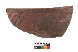 | Description / विवरण | Specimen of potsherd with black decorative geometric Linear painting, Type Black on Red Ware . |