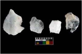 | Description / विवरण | Specimen of cores with weathered cortex and several broad fluted marks. Some of them are tapering at one end. |