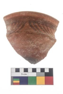 | Description / विवरण | Specimen of potsherd with black decorative geometric painting . |